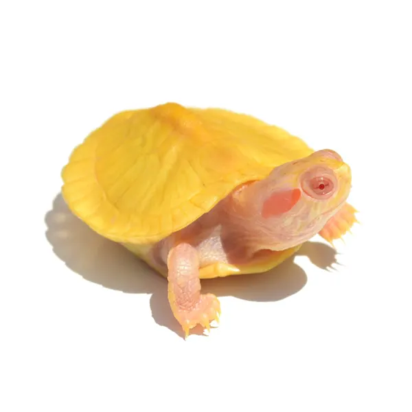 Glowing yellow shell with bright red ears — a rare albino turtle that lights up any setup.